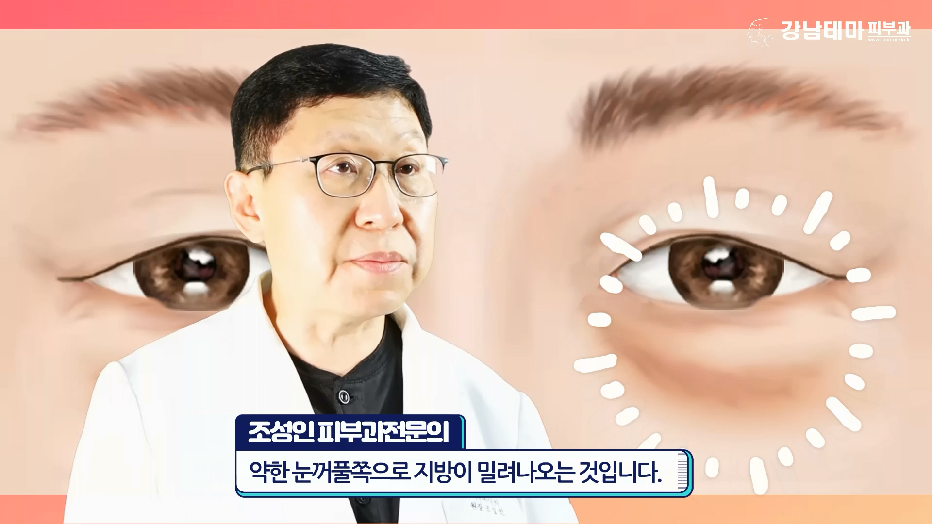 약한 눈꺼풀쪽으론 지방이 밀려나오는 것.