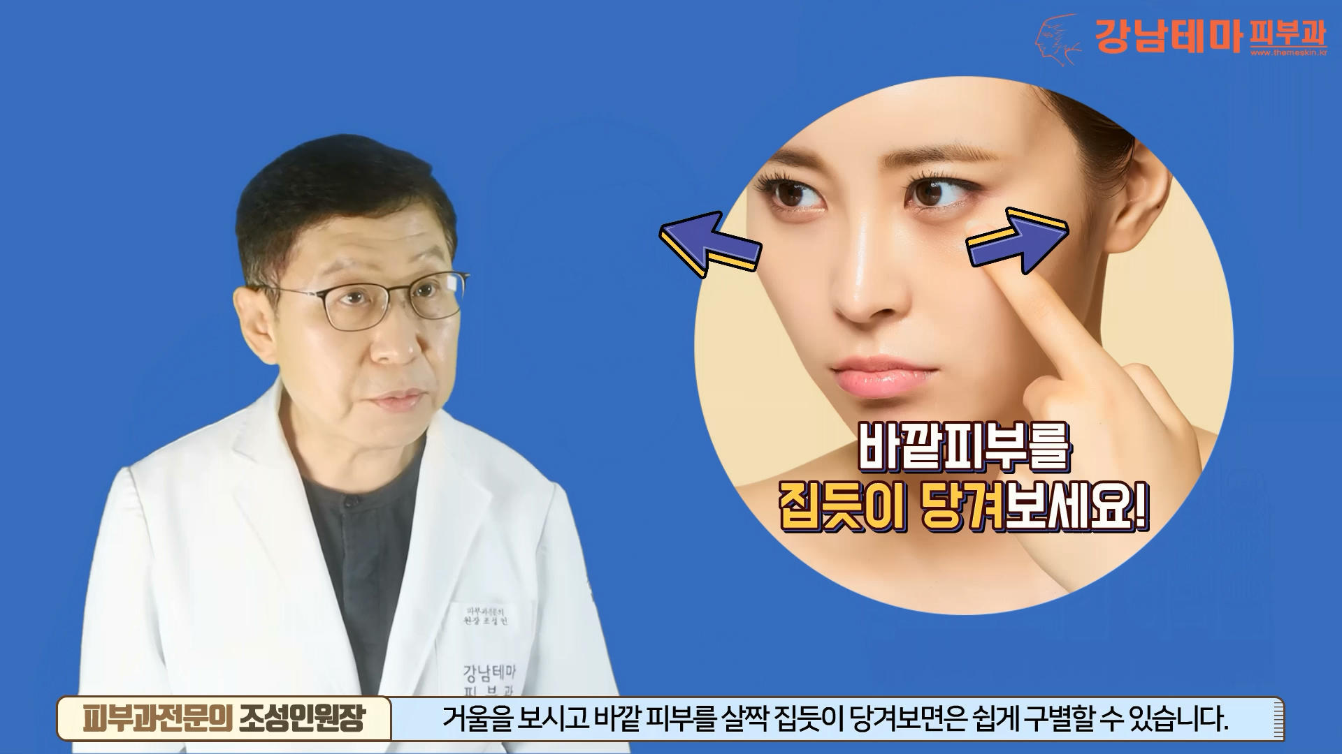 눈밑 바깥 피부를 집듯이 당겨보세요!