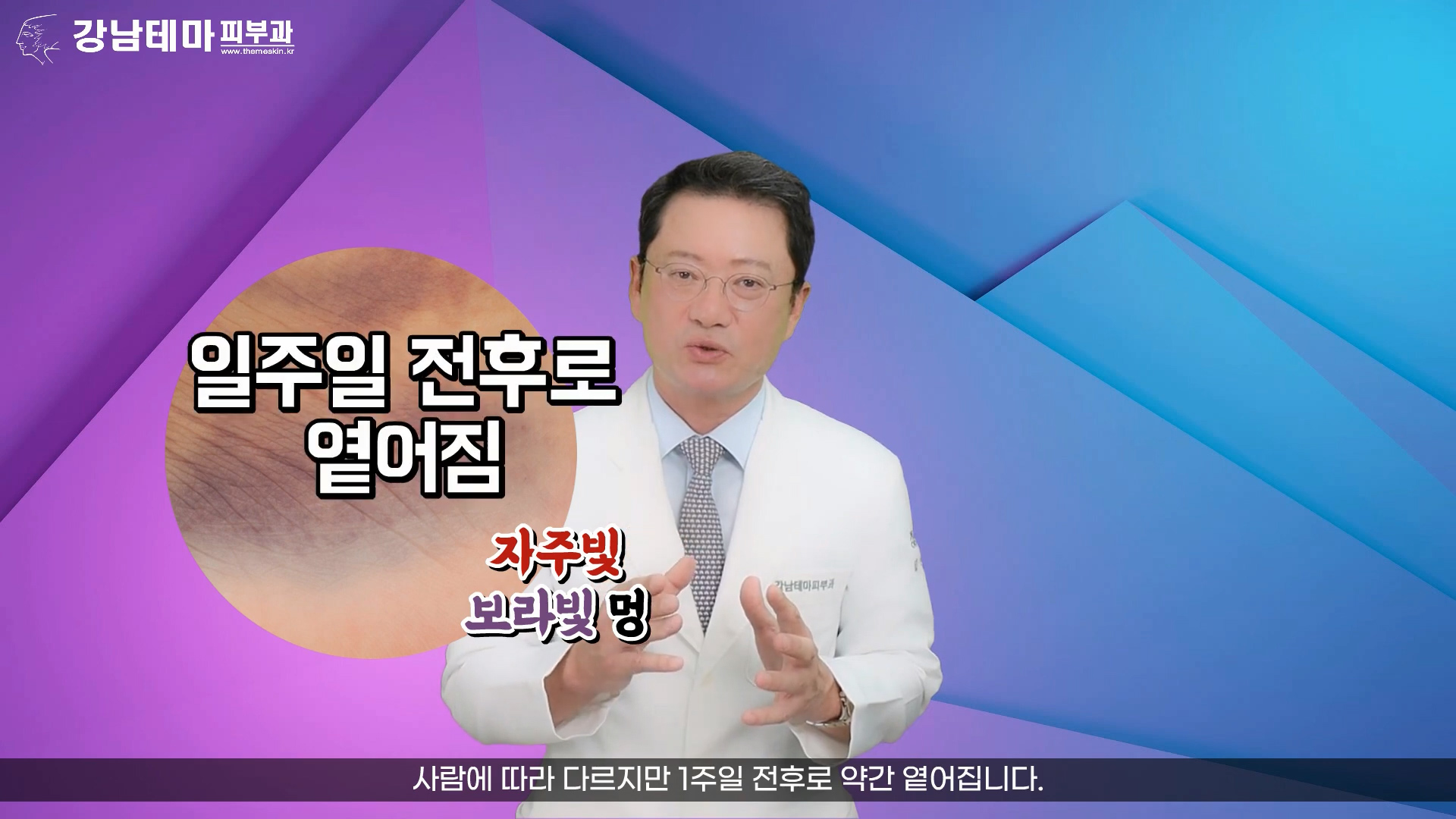 자주빛, 보라빛의 멍이 생기고 1주일 전후에 사라집니다.