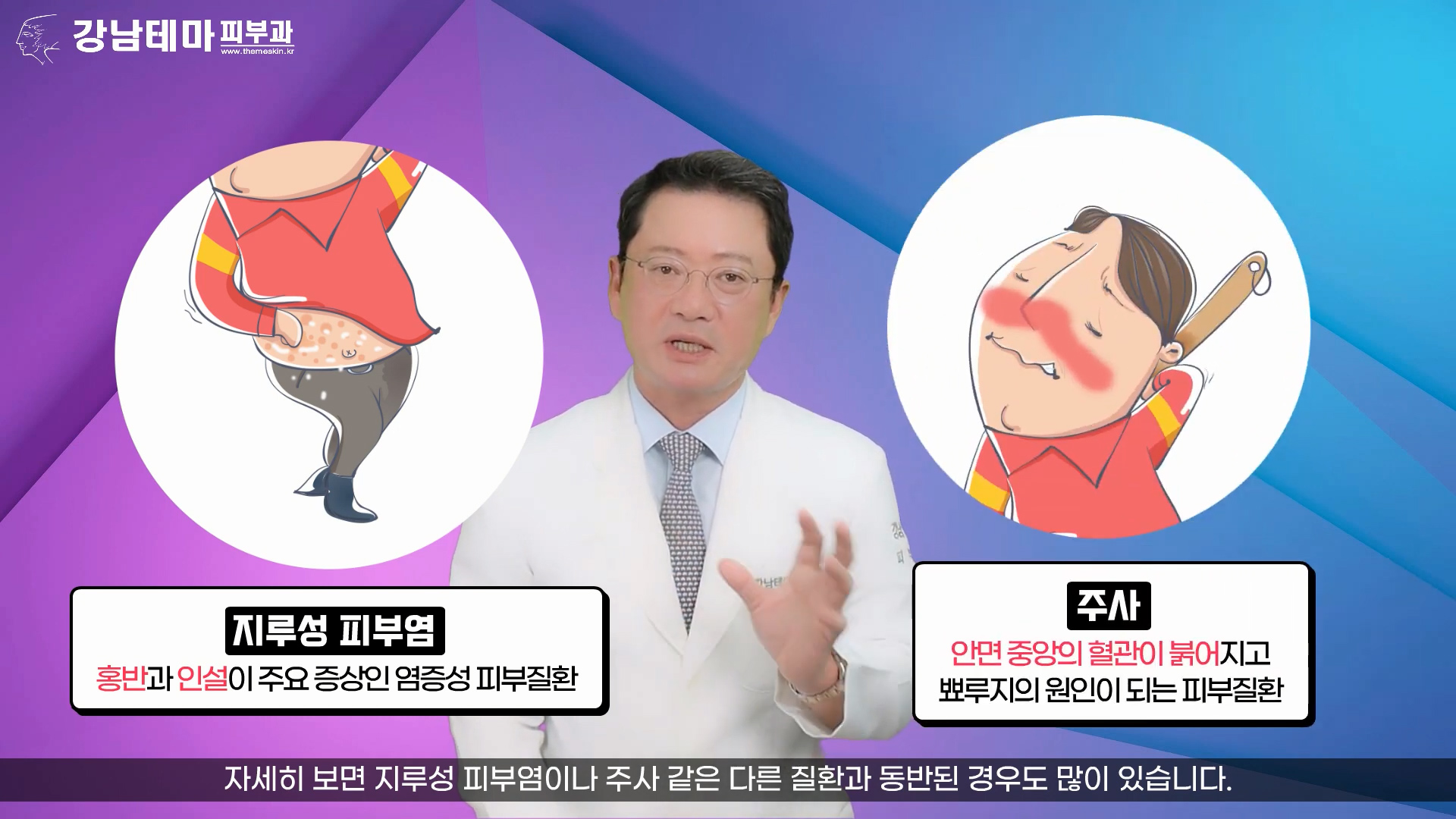 모세혈관확장증이나 지루성피부염, 주사 등의 질환을 동반하는 경우가 있습니다.