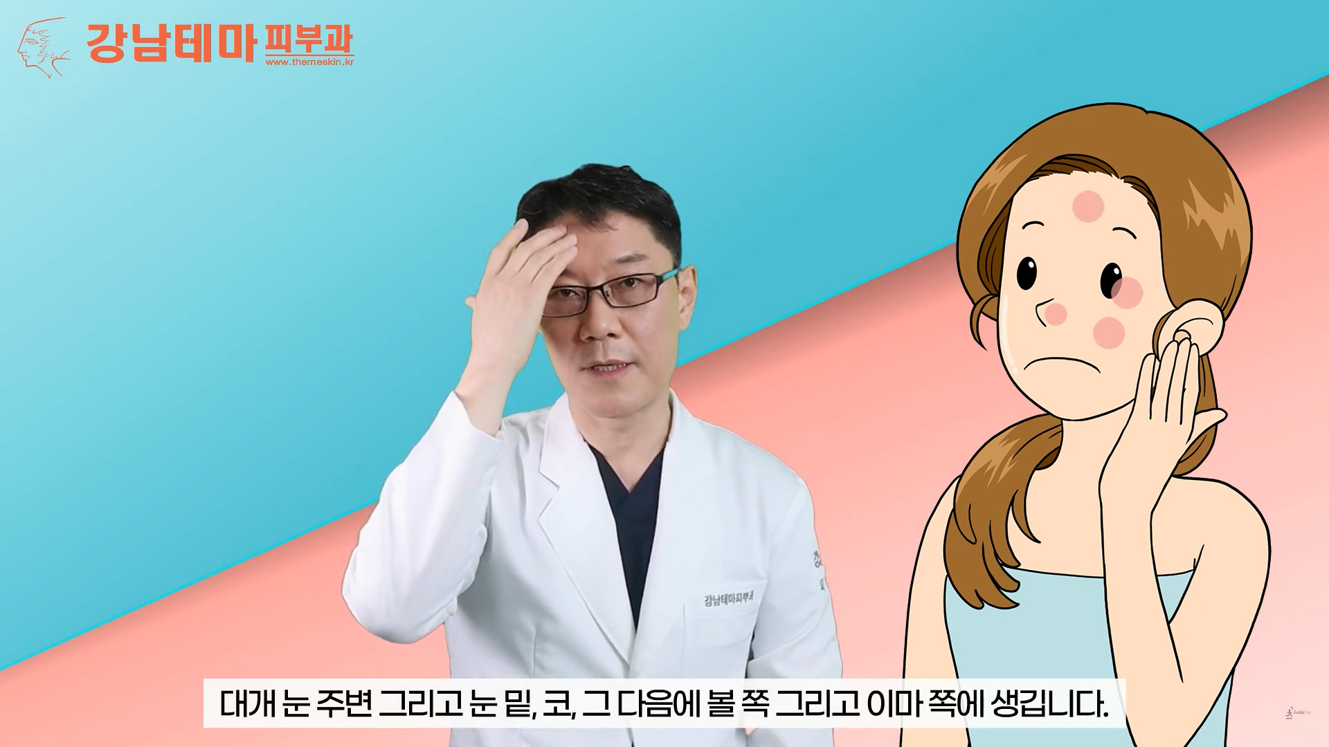 눈 주변, 눈 밑, 코, 볼, 이마 등의 부위에 생깁니다.