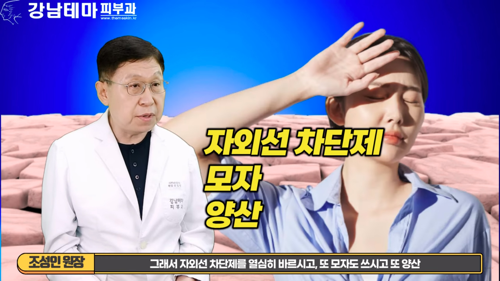 자외선 차단제, 모자, 양산 등으로 햇빛을 차단합니다.
