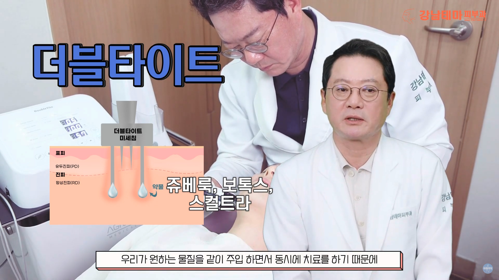 쥬베룩이나 보톡스 등의 물질을 주입에 동시에 치료합니다.